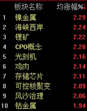 板块方面,电子化学品、钢铁行业、CPO概念、光刻机概念等涨幅靠前,而ERP概念、国资云概念、空间计算表现不佳,领跌市场。