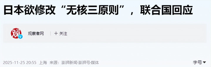 观察者网:《日本欲修改“无核三原则”,联合国回应》2025-11-25