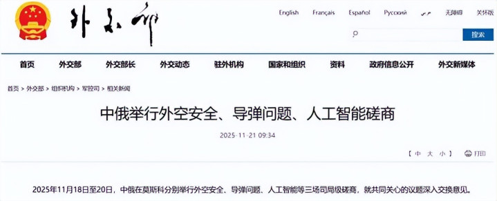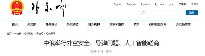 外交部:《中俄举行外空安全、导弹问题、人工智能磋商》2025-11-21