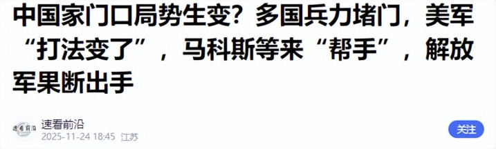 速看前沿:《中国家门口局势生变?多国兵力堵门,美军“打法变了”,马科斯等来“帮手”,解放军果断出手》2025-11-24